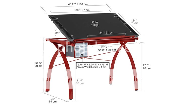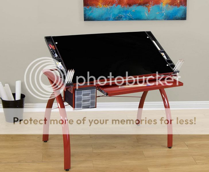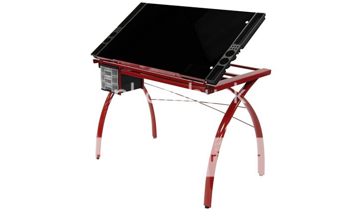 Este restirador de dibujo tiene una gran combinación de colores y materiales, en rojo y cristal negro, serás envidiado por tus compañeros Arquitectos.